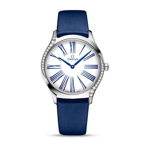 OMEGA/欧米茄 碟飞系列 名典 精钢 表壳镶钻 织面皮带 石英机芯 女士腕表 428.17.36.60.04.001