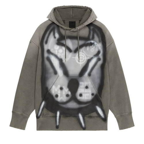 Givenchy/纪梵希 22年春夏新款 Chito联名系列 男士军绿色纯棉复古效果超大版型小狗印花连帽衫卫衣BMJ0DY3Y69-309
