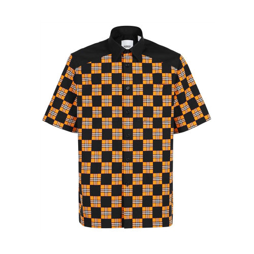 BURBERRY/博柏利 男士拼色棉质经典格纹印花短袖衬衫 8041545