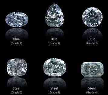 蓝钻是在形成过程中含有“硼”微量元素,所以呈现蓝绿或蓝带绿等色。蓝钻一般呈现出天蓝色、蓝色到深蓝色的透明钻石,其中以深蓝色为最佳。深蓝色钻石格外罕见,故为稀世珍品,南非普里米尔矿山是其主要来源。