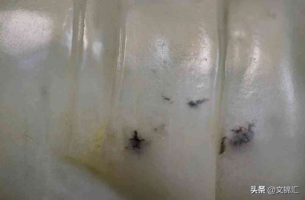 钙化。是由地热影响而形成,形成时间二千年以上。古玉的钙化是从里到外的一个过程,表面呈现出润泽的光亮,现在很多伪器,多是以酸腐蚀而成,表面干涩过渡不自然,像是人用毛笔甩上去的点状物,而且没有深入肌里,有时出现起皮现象。