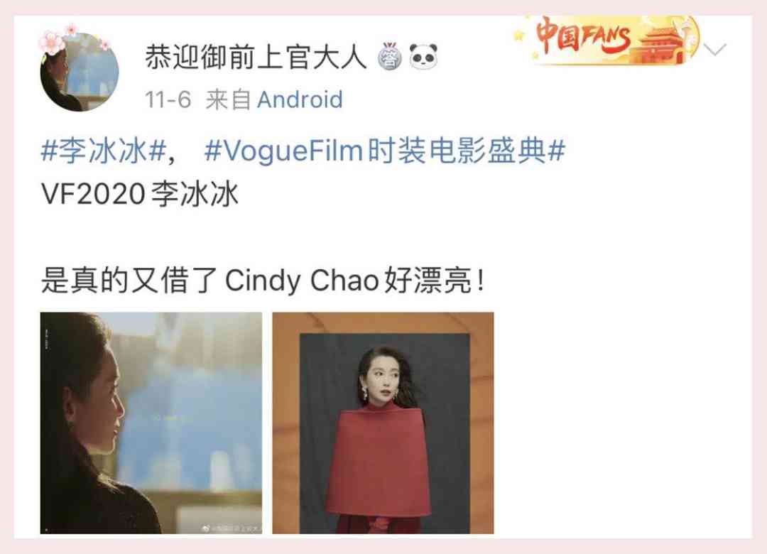 李冰冰的粉丝为何会感慨,“是真的又借了CINDY CHAO……”