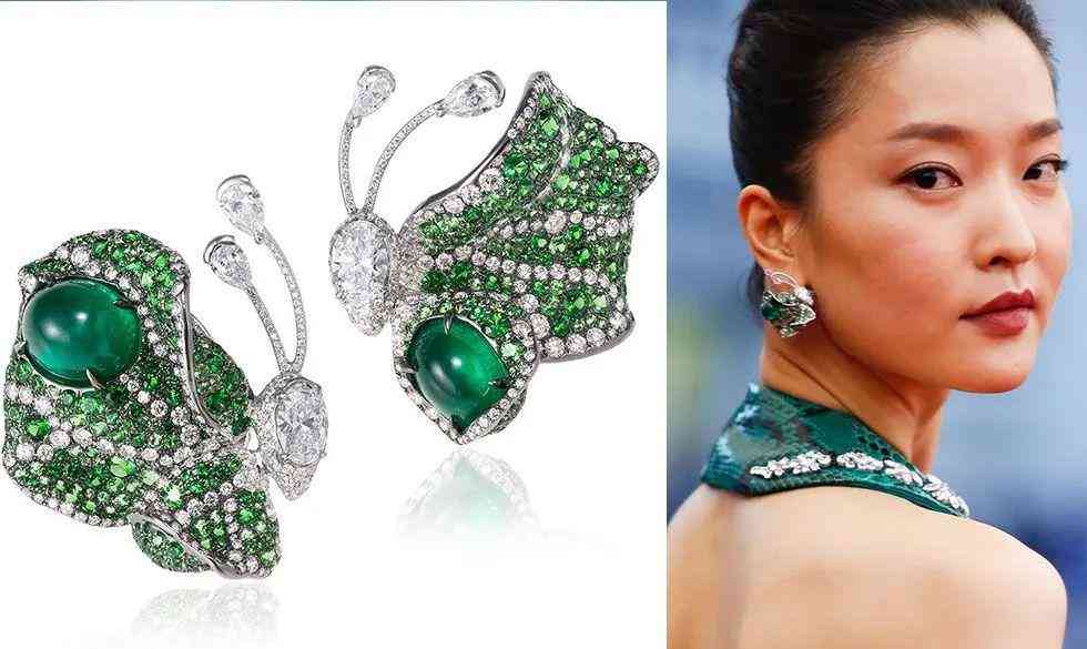 蝴蝶系列祖母绿耳环栩栩如生,以搭配同色系露背礼服,相得益彰。