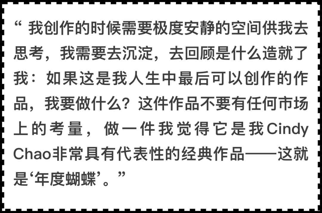 蝴蝶象征着蜕变,也记录着Cindy Chao的艺术突破: