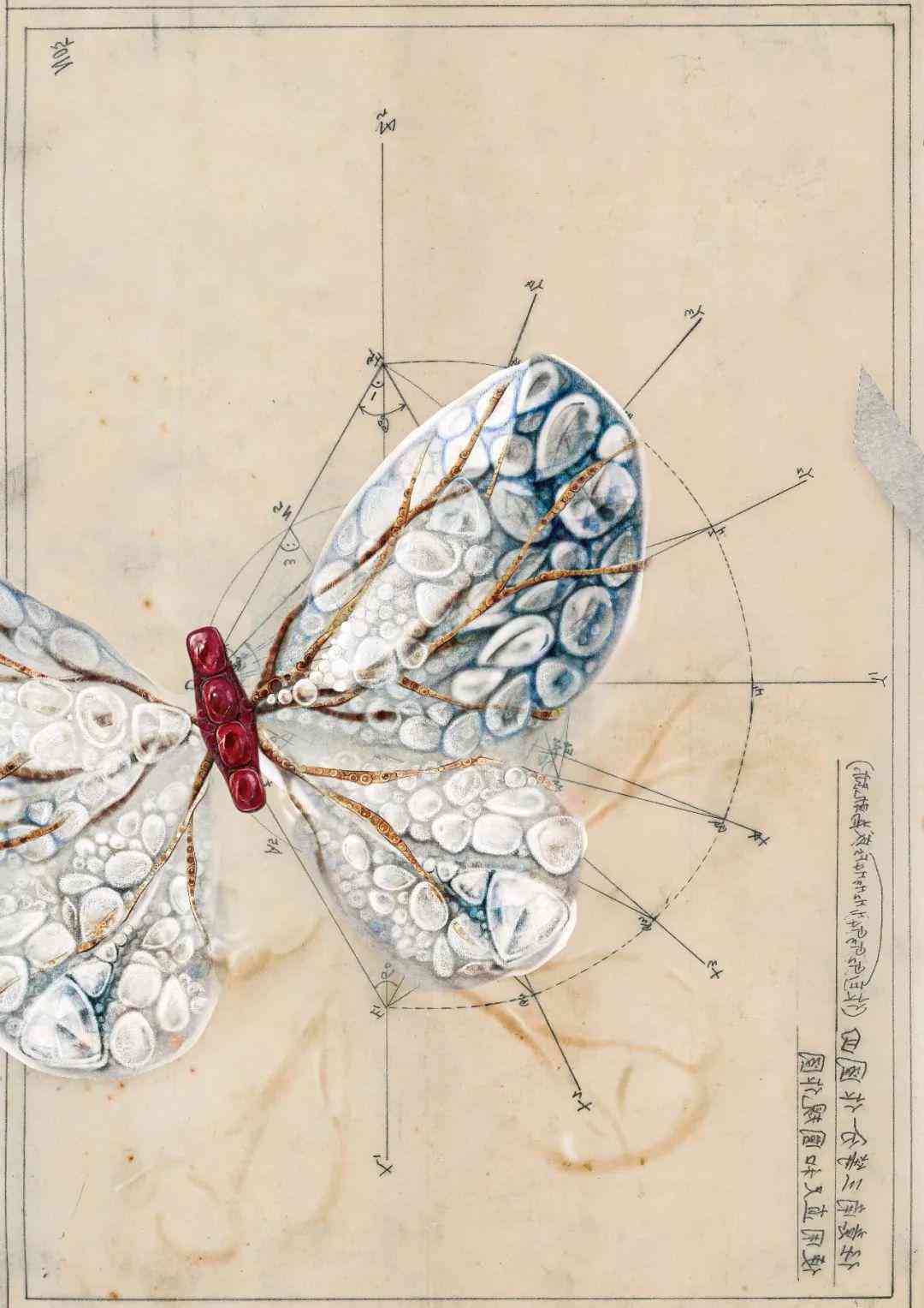 去年的“年度蝴蝶”极光蝴蝶干脆回归本心,用祖父谢自南手绘的建筑图稿来做创作理念,蹁跹的是向上之情。