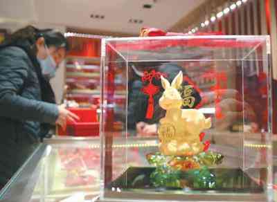 在上海,当地黄金珠宝企业抓住国际金价趋稳的契机,调整产品布局,加大对古法金、5G金等热门产品的宣传和优惠力度,推动黄金类产品热销。上海黄金饰品行业协会发布的数据显示,兔年春节长假期间,上海市场黄金珠宝销售额就达8.75亿元。各大黄金珠宝企业还针对年轻人消费群体,推出兔年主题等黄金产品。老凤祥“百福兔”、中国黄金生肖金条、老庙黄金“万饰皆安事事金安”系列新品等受到消费者热捧。