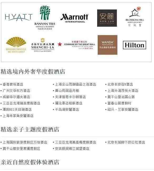 三张卡均有酒店权益,下图放出部分支持酒店: