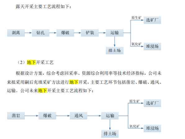 公司未来地下开采主要工艺流程如下: