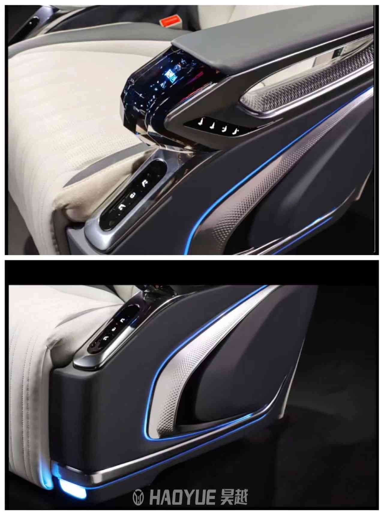 座椅下面自然是换成了斜轨。再看看座椅背板,老板按键依旧保留,通风口则做成了飞翼的造型,展翅高飞,寓意和细节很考究。
