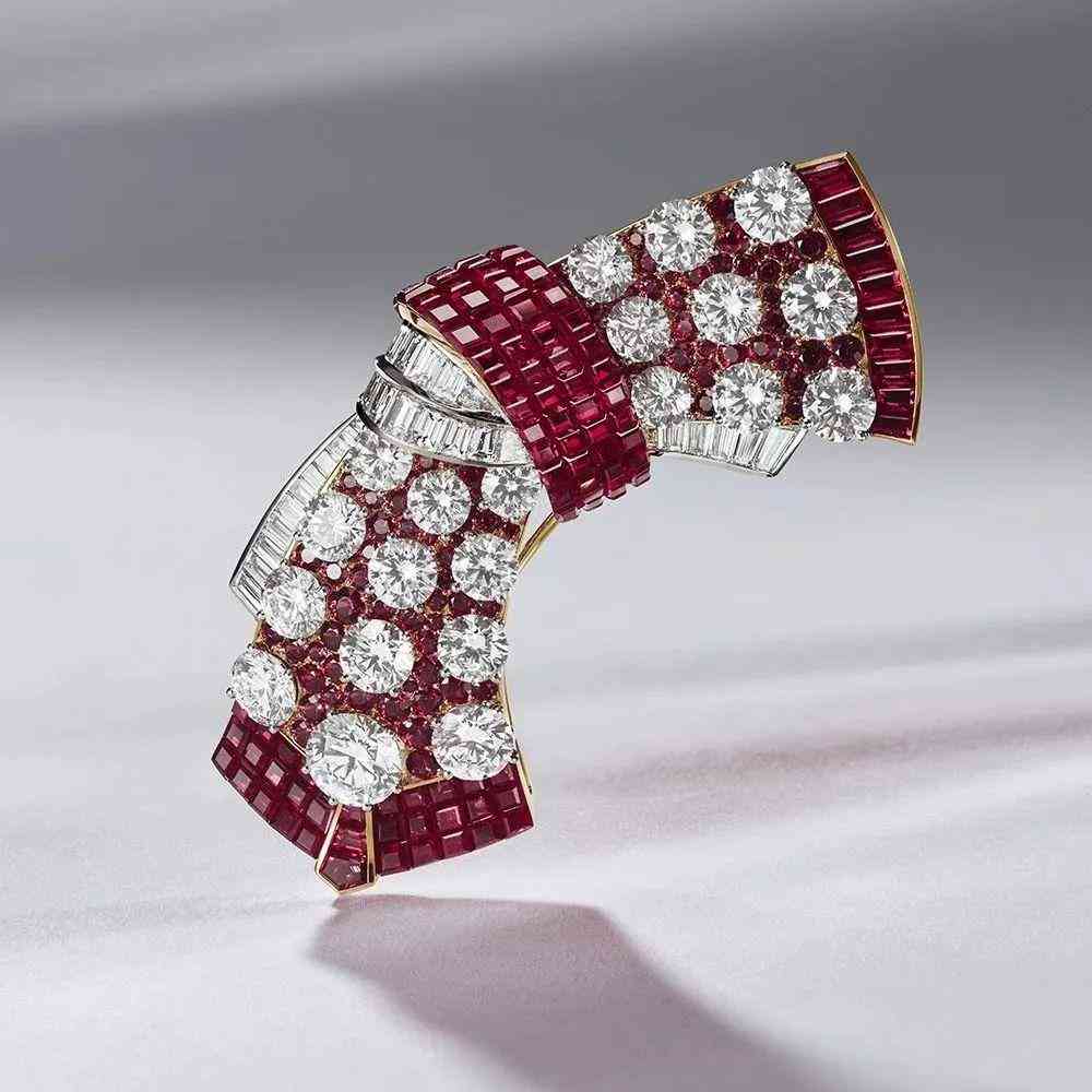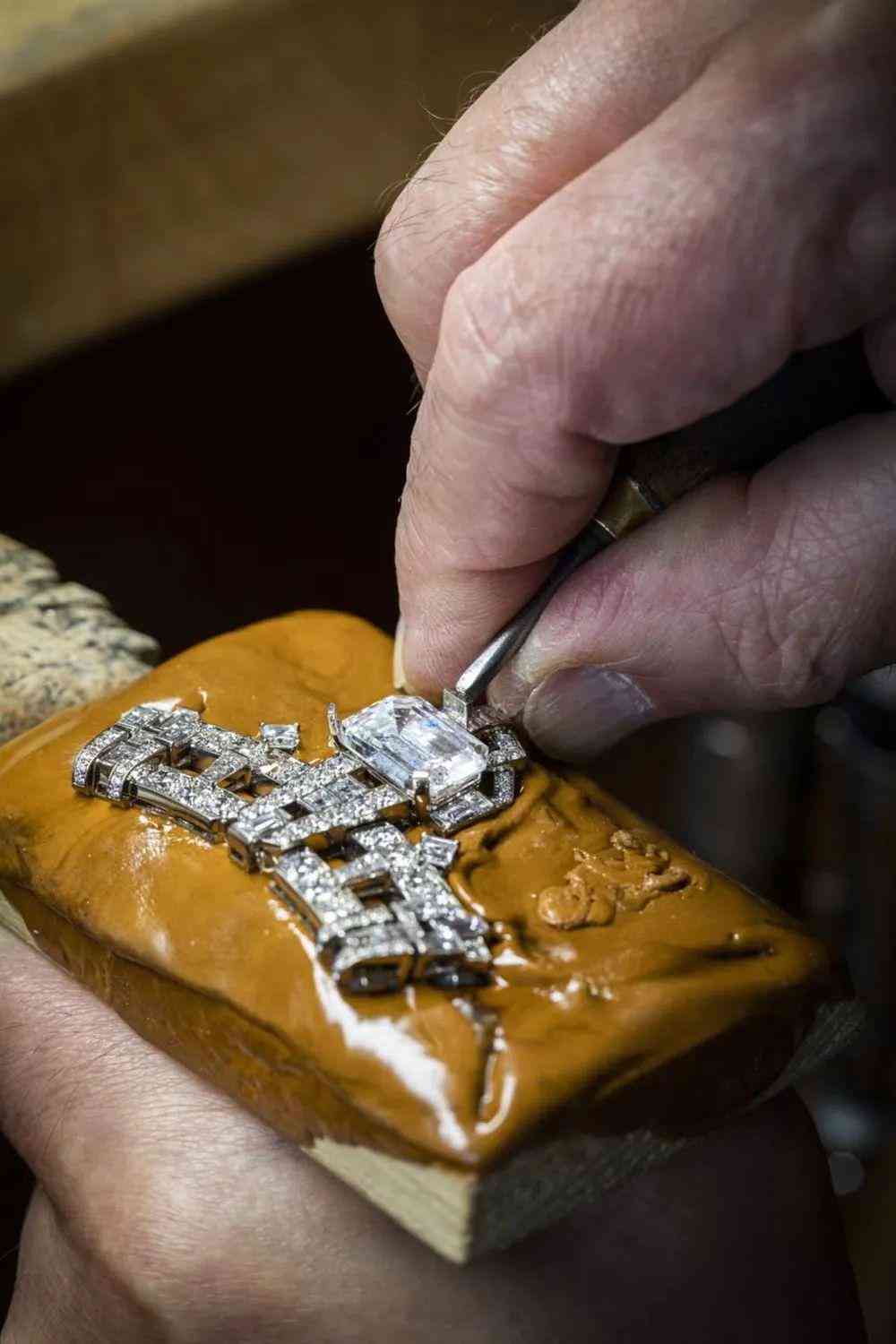 近 100 年过去,它的工艺原理早已不是秘密,之所以可以让金属“失踪”,是因为工匠们在每一颗宝石的腰部都开了小槽,宝石可以通过两边的槽滑进金属轨道中,从表面看,宝石和宝石严丝合缝地排列,形成“以宝石入画”的效果。