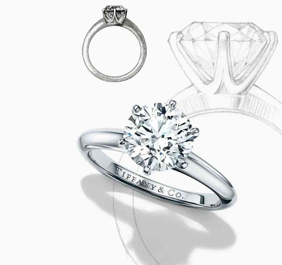 最具代表性的就是 1886 年 Charles Lewis Tiffany 推出的六爪镶嵌钻戒,如果你从钻戒上方看它,只会看到紧贴着钻石的 6 颗圆点,毫无多余装饰,钻石成为的主角。