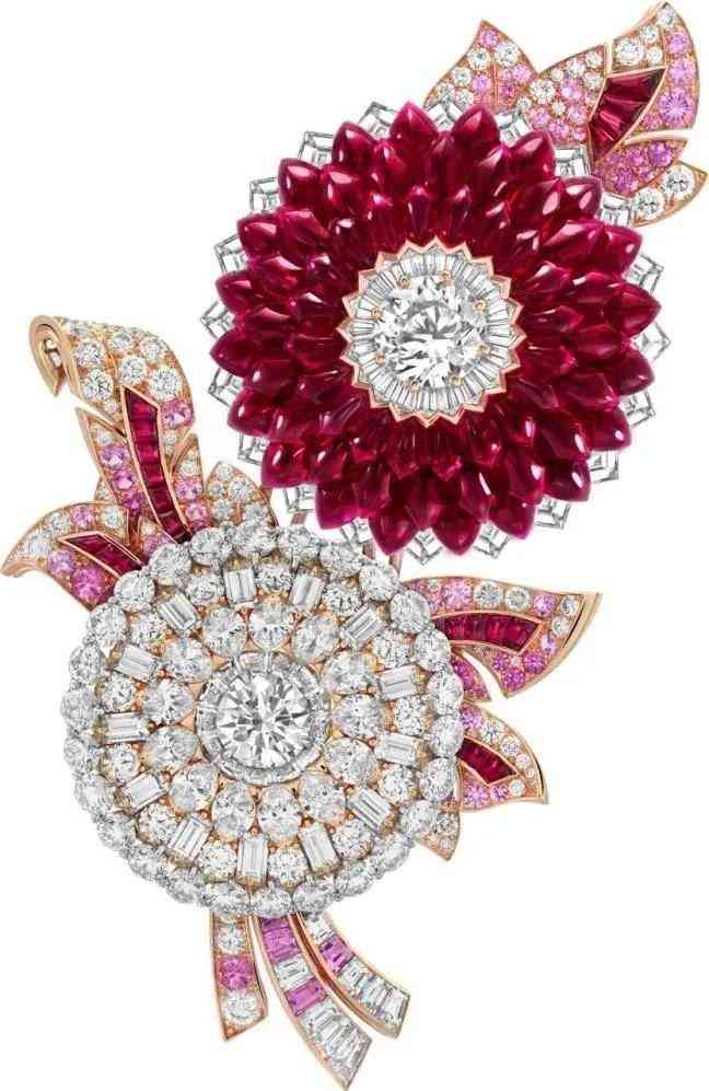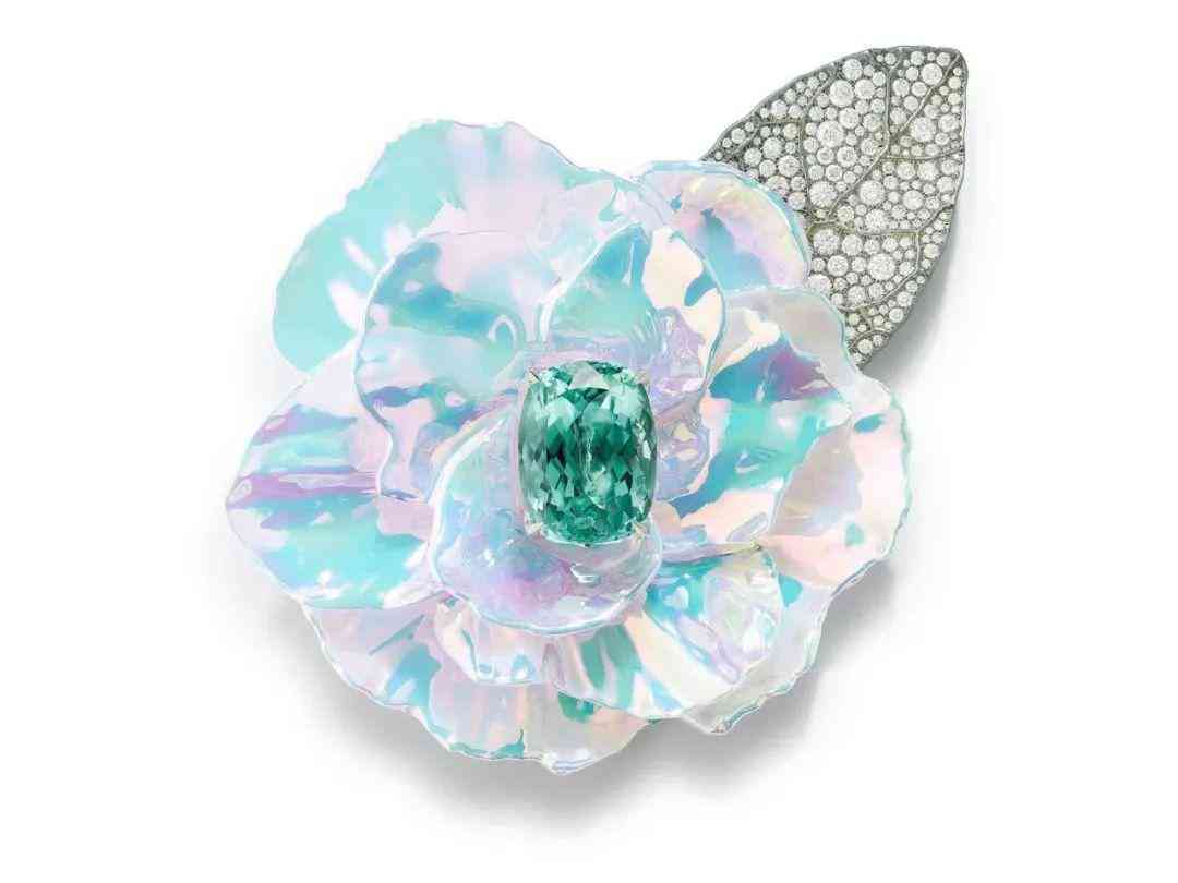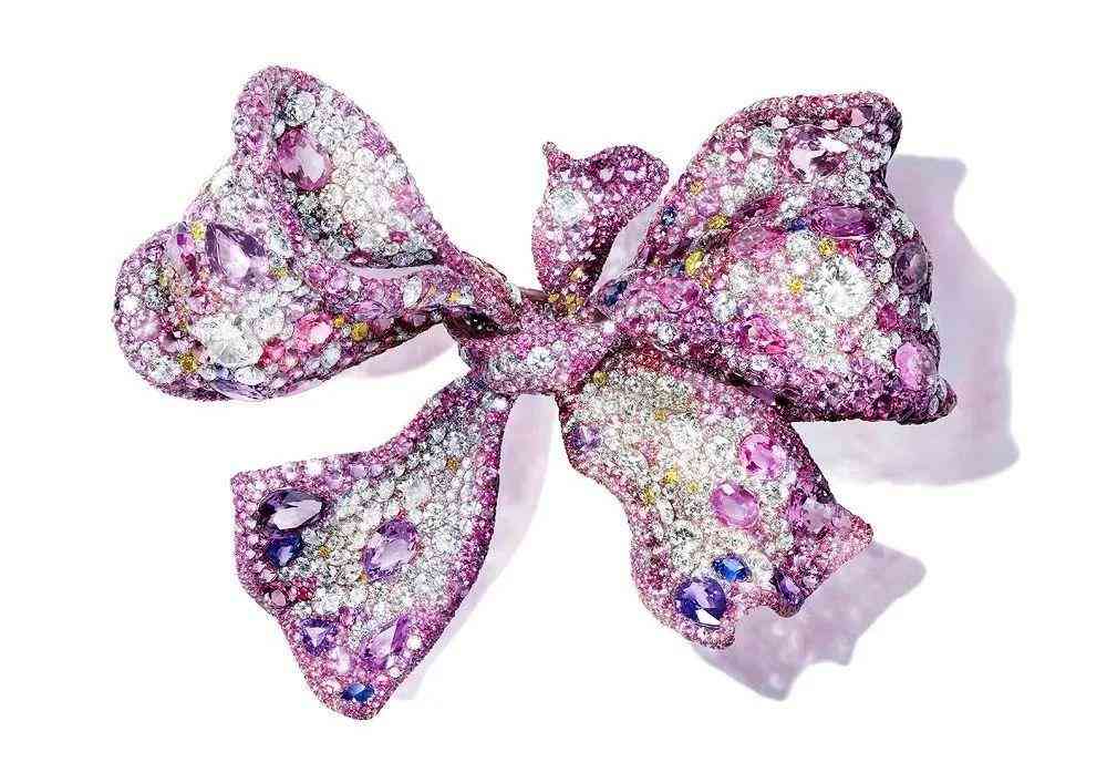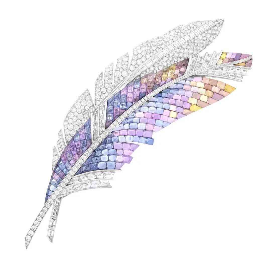 和传统隐密式镶嵌使用的刻面宝石不同,新的两种衍生工艺都采用弧面切割宝石,无论打造花卉、羽毛等自然元素还是绸带、蝴蝶结造型,塑造立体效果的同时还能使珠宝作品的颜色更柔和。