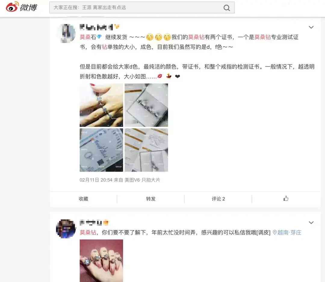这也是代购们在卖莫桑石的文案中提到最多的卖点。