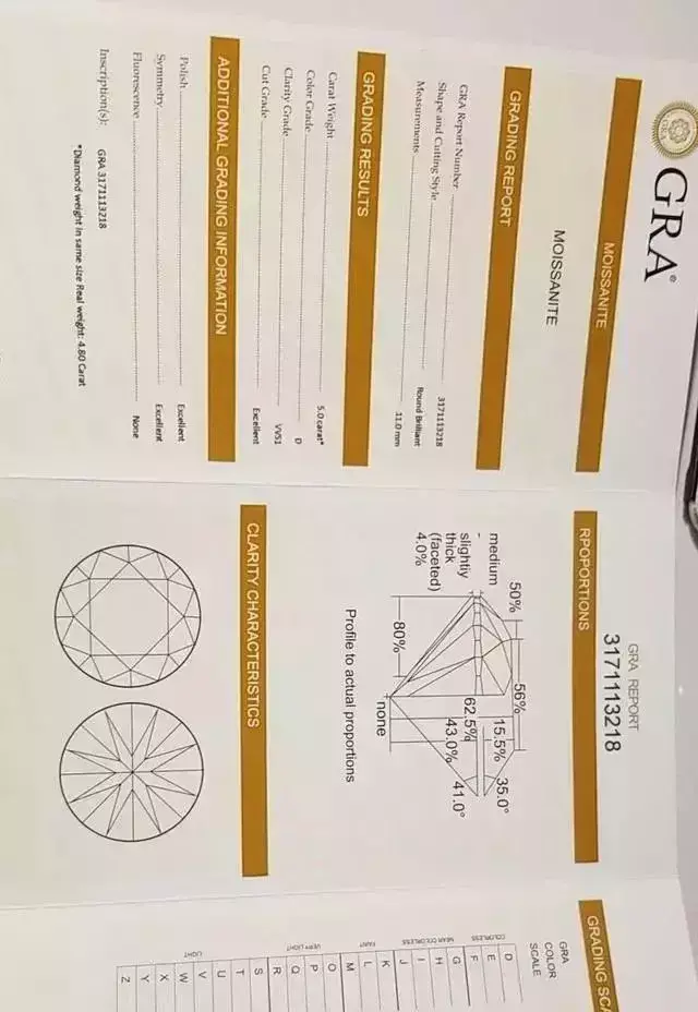 关于证书,莫桑石确实有证书所谓的莫桑国际证书其实是生产厂商自己做的,GRA,是正宗美国莫桑钻的证书,GIA是美国宝石学院,是国际珠宝行业标准的提出者,当然也会给莫桑石开证书,但是请注意,莫桑石不是钻石,证书上一定写的是moissanite,而不是diamond。