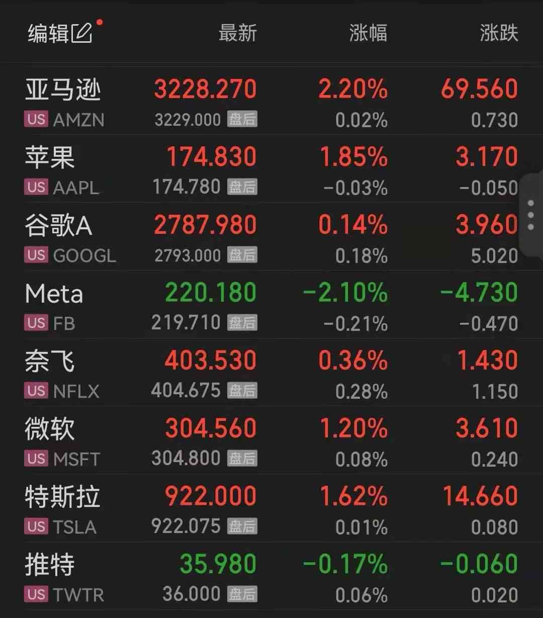美国大型科技股多数上涨,亚马逊涨逾2%。