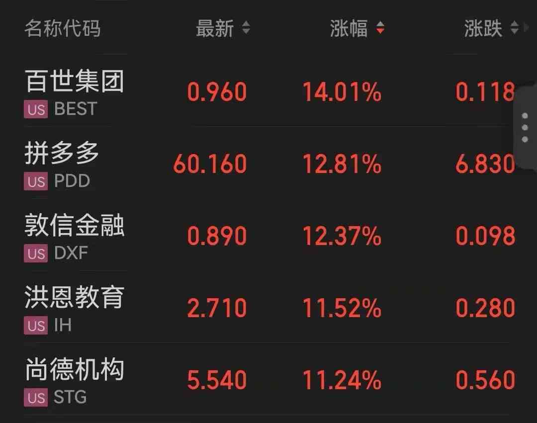 热门中概股周二多数上涨 拼多多涨近13%