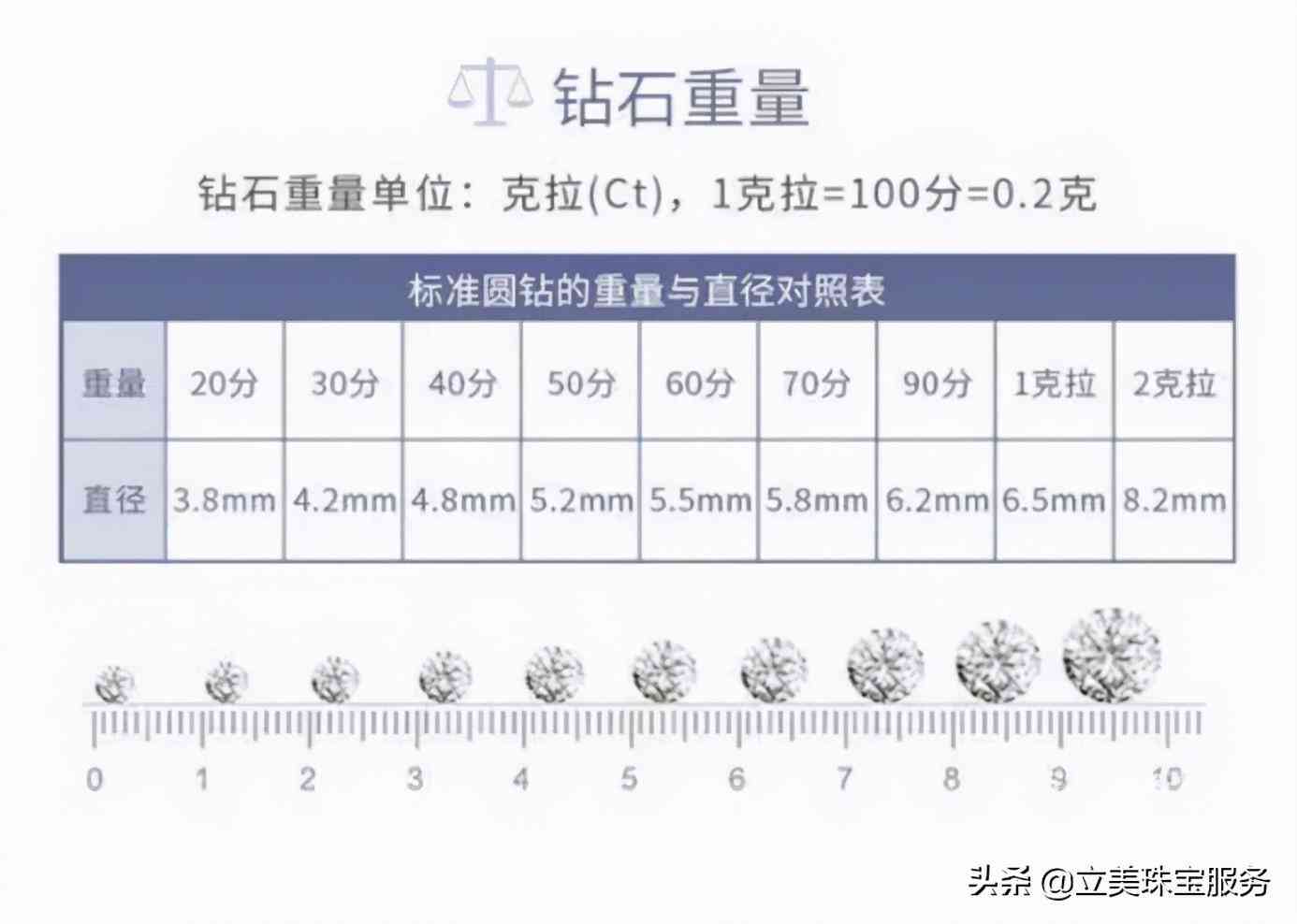 重量越重的钻石,价格也越贵,而钻石的重量是以克拉和分来区分的,比如100分就是1克拉,1克拉等于0.2克,你可以看看你购买的到底是多少分的钻石,可以判断你的钻石有多少克。
