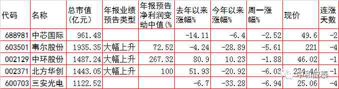 相关概念股:中芯国际、韦尔股份、中环股份、北方华创、三安光电