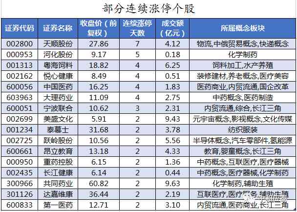 涨停股中,从收盘涨停板封单量来看,中国医药最受追捧,收盘涨停板封单有6192.76万股;其次是长江健康、悦心健康等,涨停板封单分别有3862.48万股、3595.3万股。以封单金额计算,中国医药、悦心健康、长江健康等涨停板封单资金较多,分别有10.06亿元、3.05亿元、2.37亿元。