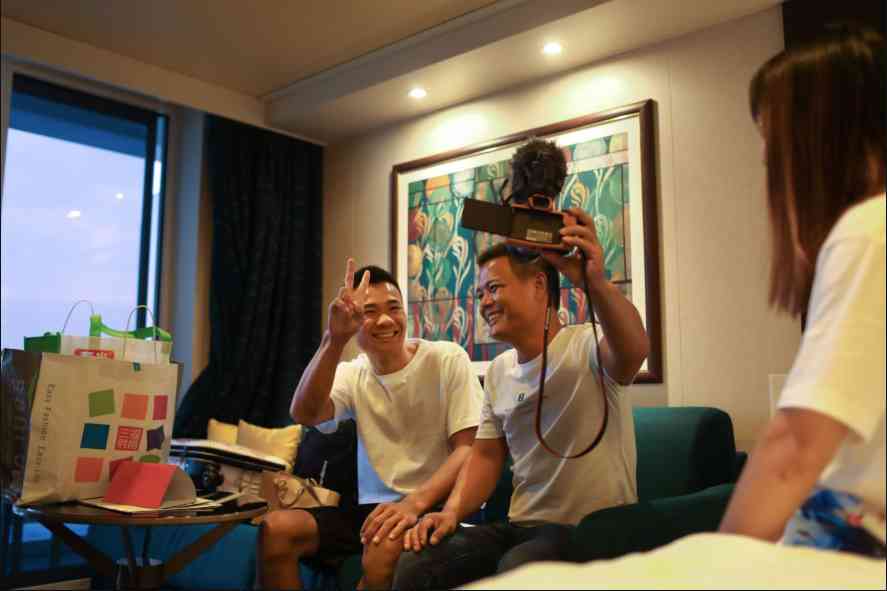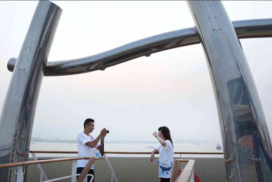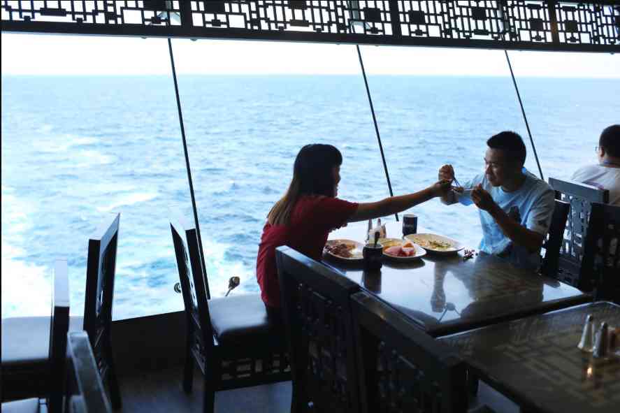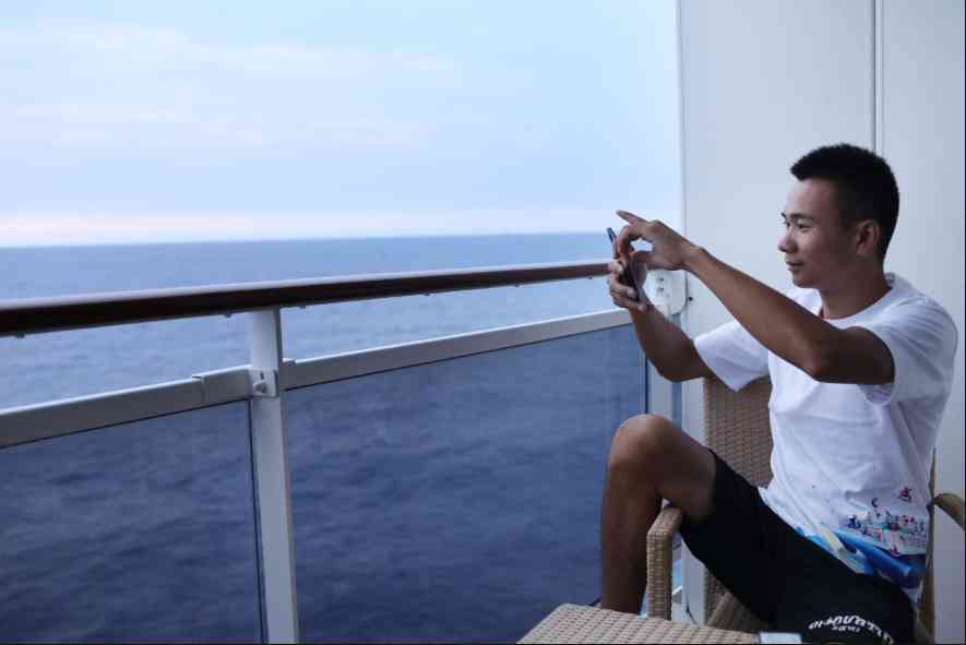 在船上,我们像两个小年轻,很自由,每天想着去这儿玩、去那儿玩。我和老婆在船上看海上的夕阳,有种和每天都不一样的感觉,好像回到结婚前谈恋爱的时候。