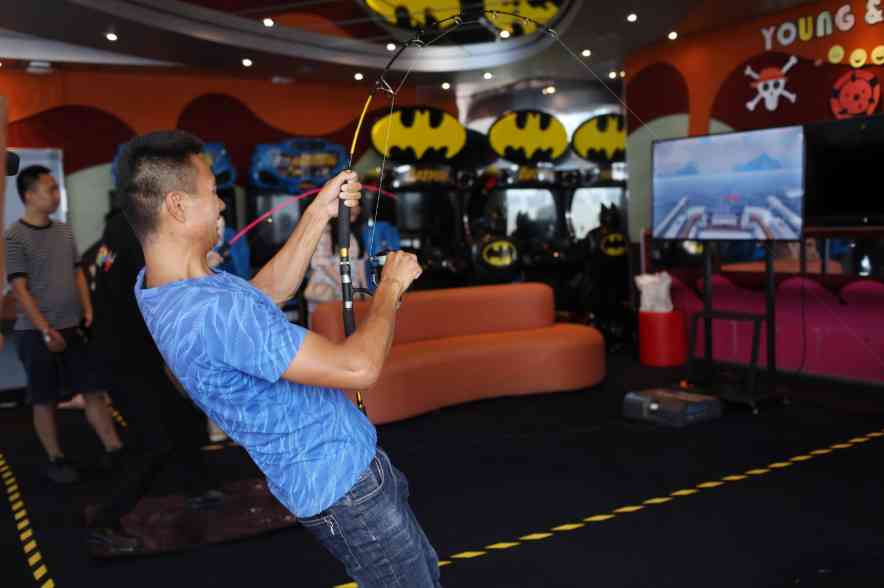 不过,我在船上玩了钓鱼游戏。那个游戏鱼竿把钓鱼的手感模仿得非常相似,而且是钓大鱼的手感,最高拉力能达到100斤。我们平时钓黄鲷之类的鱼,最大也就大几斤。