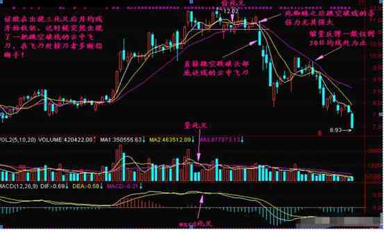 所谓乌云飞刀,乌云说明是股价已经到高位, 上升乏力了,这时候往往抛压加重,犹如乌云压顶!如果此时出现跌破均线系统或头部底边线的根长阴线时,这根长阴线就称为“乌云飞刀”!