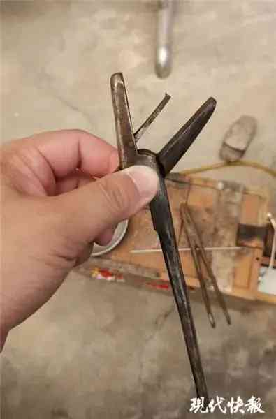 民警发现,夏某手持的钳子也构造特殊,其中钳嘴一侧有夹层,底下是个小槽,不经意间,金饰被钳口夹断的部分就留在了这个槽里。