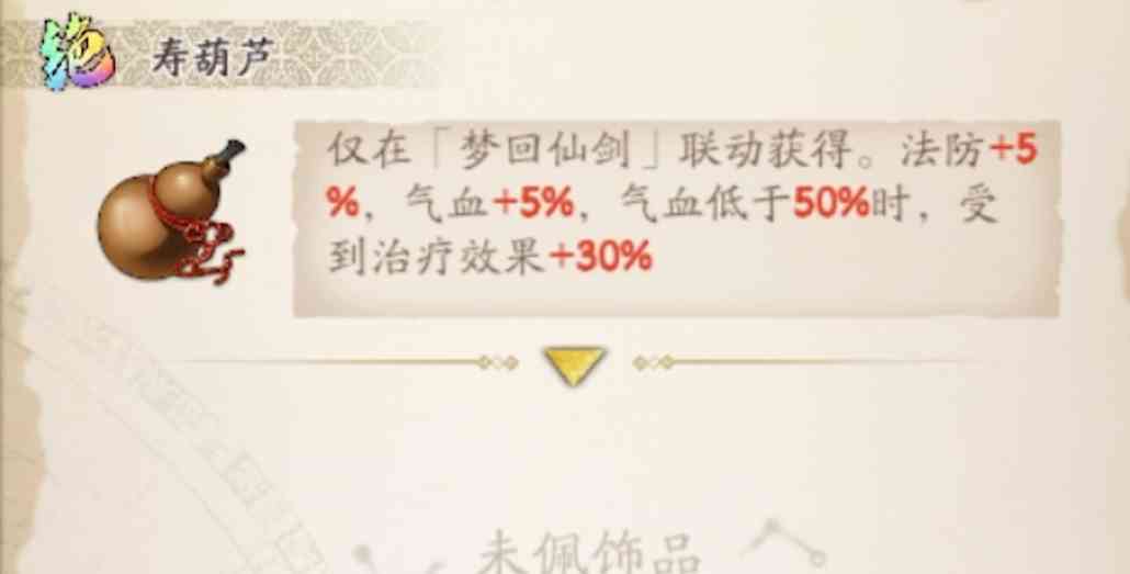 之前有个朋友告诉我,寿葫芦其实还有隐藏属性,是可以增加法术抵抗力的。虽然在状态栏里面没有显示,但是佩戴之后中了法术伤害会降低至少三分之一。