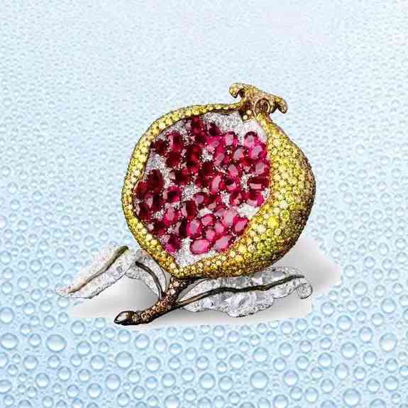 Carnet这款石榴胸针做得实在太逼真,戴到胸前回头率马上爆表。