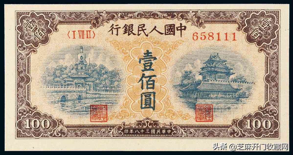 1949年版人民币壹佰圆豹子号“北海与角楼”黄面,成交价格: RMB 52900