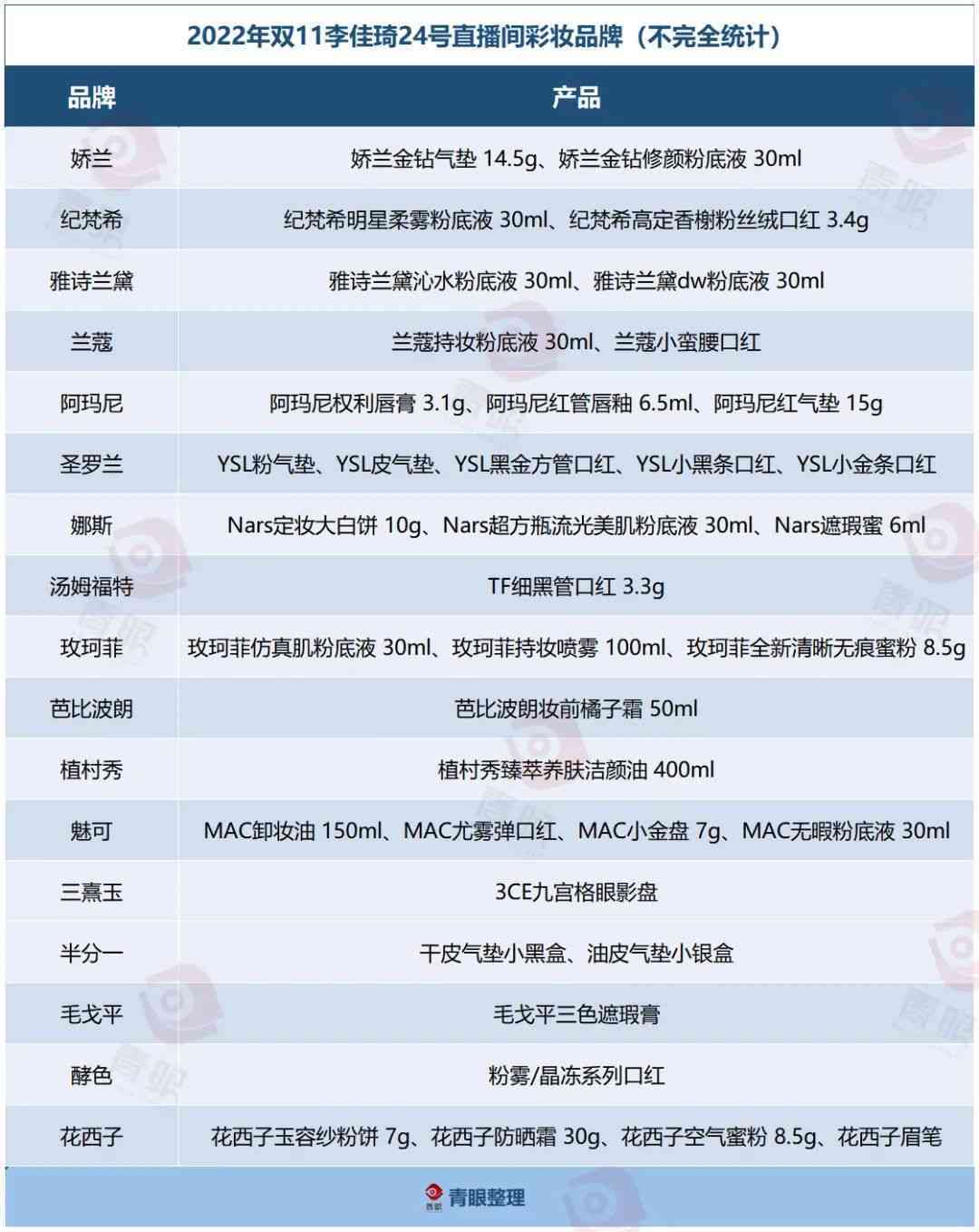 9月20日,停播三个多月的李佳琦在淘宝直播间正式复播,迅速引起了行业的广泛关注。彼时距离2022年双十一预售开启还剩1个月时间,经历今年618的短暂低迷后,李佳琦的回归也让业界重拾对今年双十一美妆行业的信心。 事实证明,在超头部主播李佳琦的带动下,今年双十一关注度得到普遍提升,品牌方跃跃欲试抛出橄榄枝,而消费者更是摩拳擦掌准备买买买。据观察,今年李佳琦直播间的优惠力度也有略微提升,去年李佳琦直播间三熹玉旗下一款眼影单价为179元,今年则降到了161元;花西子旗下一款蜜粉饼的直播间定价则从199元降到了149元。 值得注意的是,在10月24日李佳琦直播清单中,彩妆产品大多都集中在玫珂菲、兰蔻、圣罗兰、纪梵希等国际品牌,出现的国货品牌寥寥无几。少数亮相李佳琦直播间的国货品牌之一为花西子,在双十一李佳琦直播首日,花西子首发了一款与其共创的新品玉容纱粉饼,以及上架了一款防晒霜、空气蜜粉和眉笔。 而对比刚刚出炉的彩妆预售成绩单,TOP20榜单中高达19个品牌均进入了李佳琦直播间,其带货能力可见一斑。