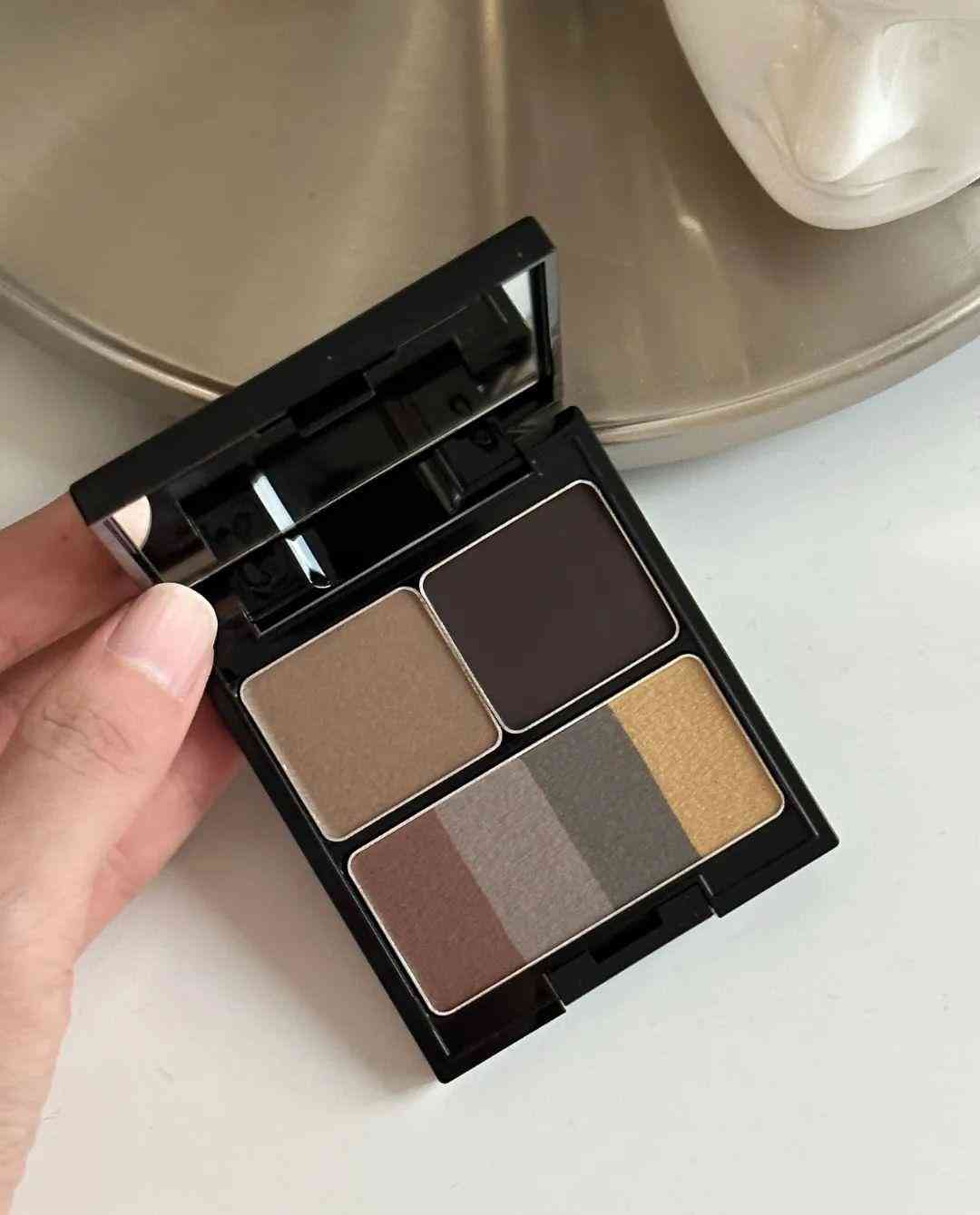 这盘虽然是我12月刚入手的,但非常好用!哪怕是满脸出游,用它画出来的眉毛都会纹丝不动,不容易结块,搭配眉刷用非常方便,随便画几下眉毛的线条就出来了。