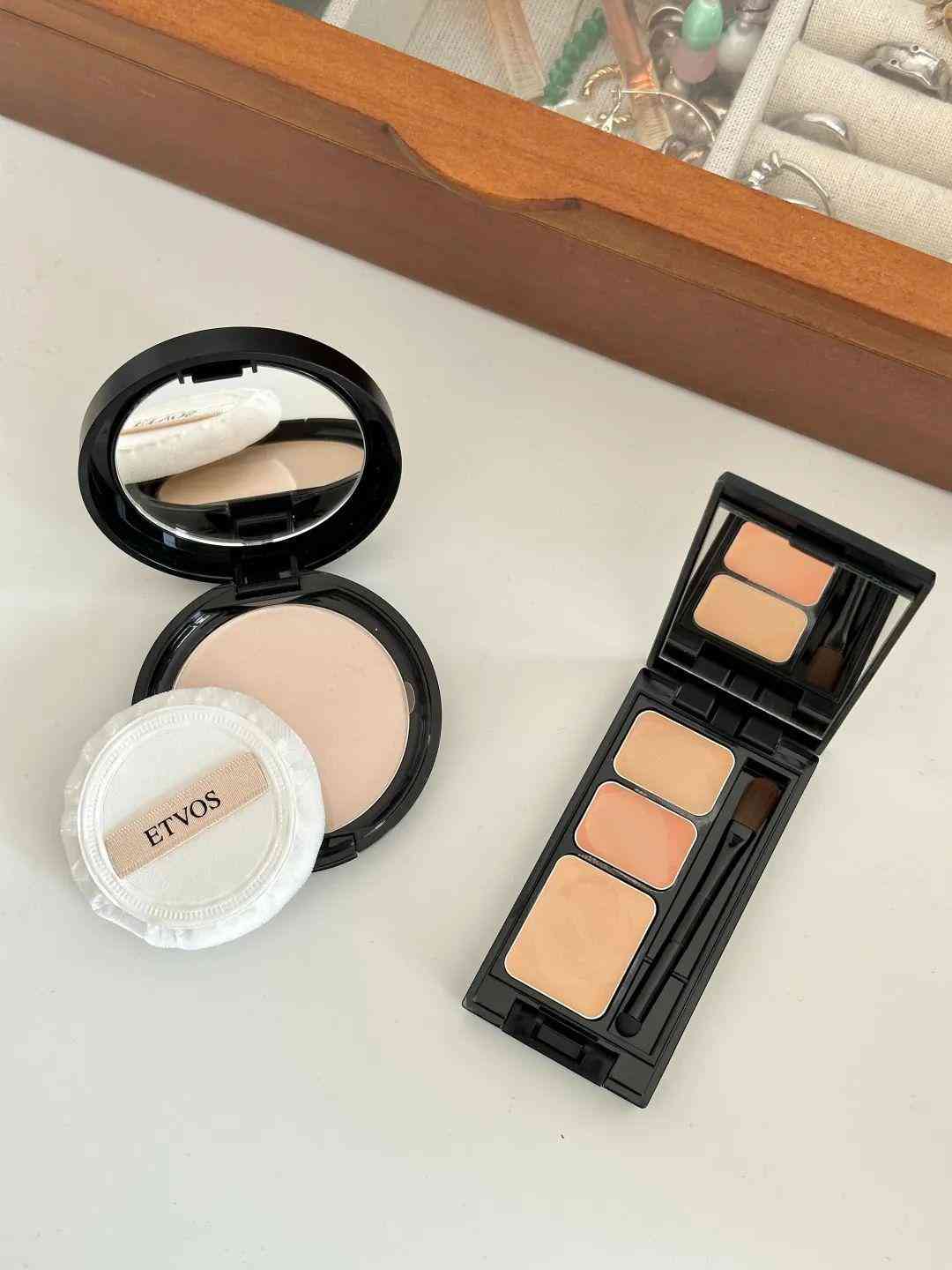 3、etvos矿物粉饼+三色遮瑕