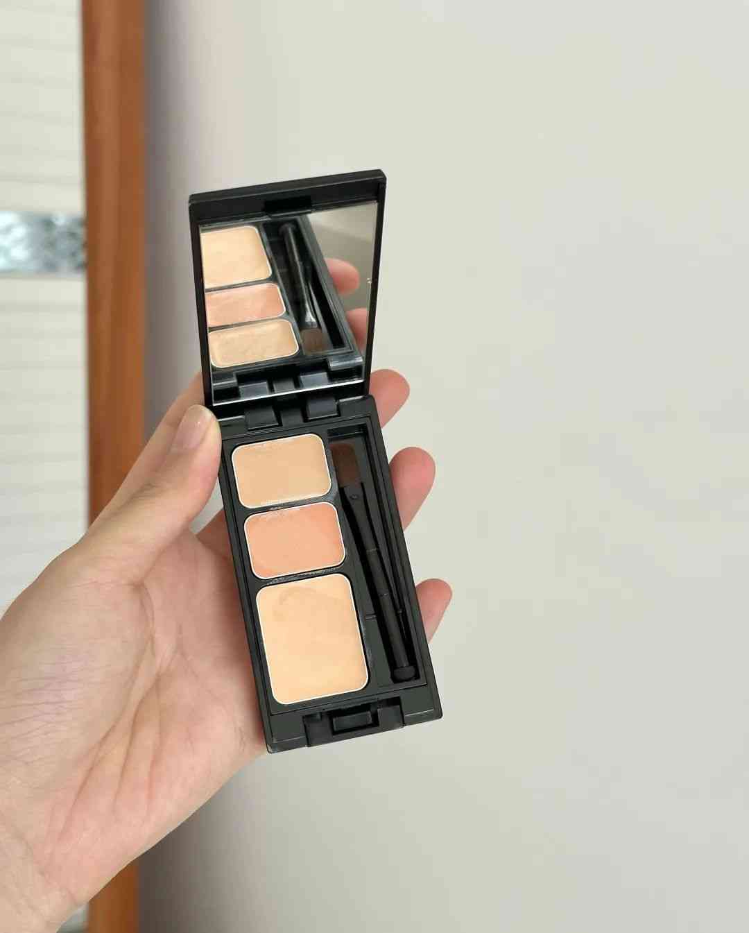 这三个颜色配得其实很实用了,基本外出带这一盘就足够。我看不少化妆师的爱用也是这盘,如果平时化妆很讲究面中平整度、立体感的,真的可以试试这盘。