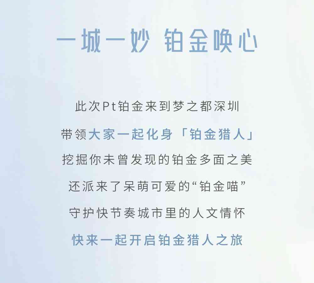 Pt铂金还派来可爱的铂金喵登陆壹方天地,助力「铂金猎人」,发现铂金元素,以铂金之光照亮鹏城,其软萌的外表,已经收割了一大波人的心!