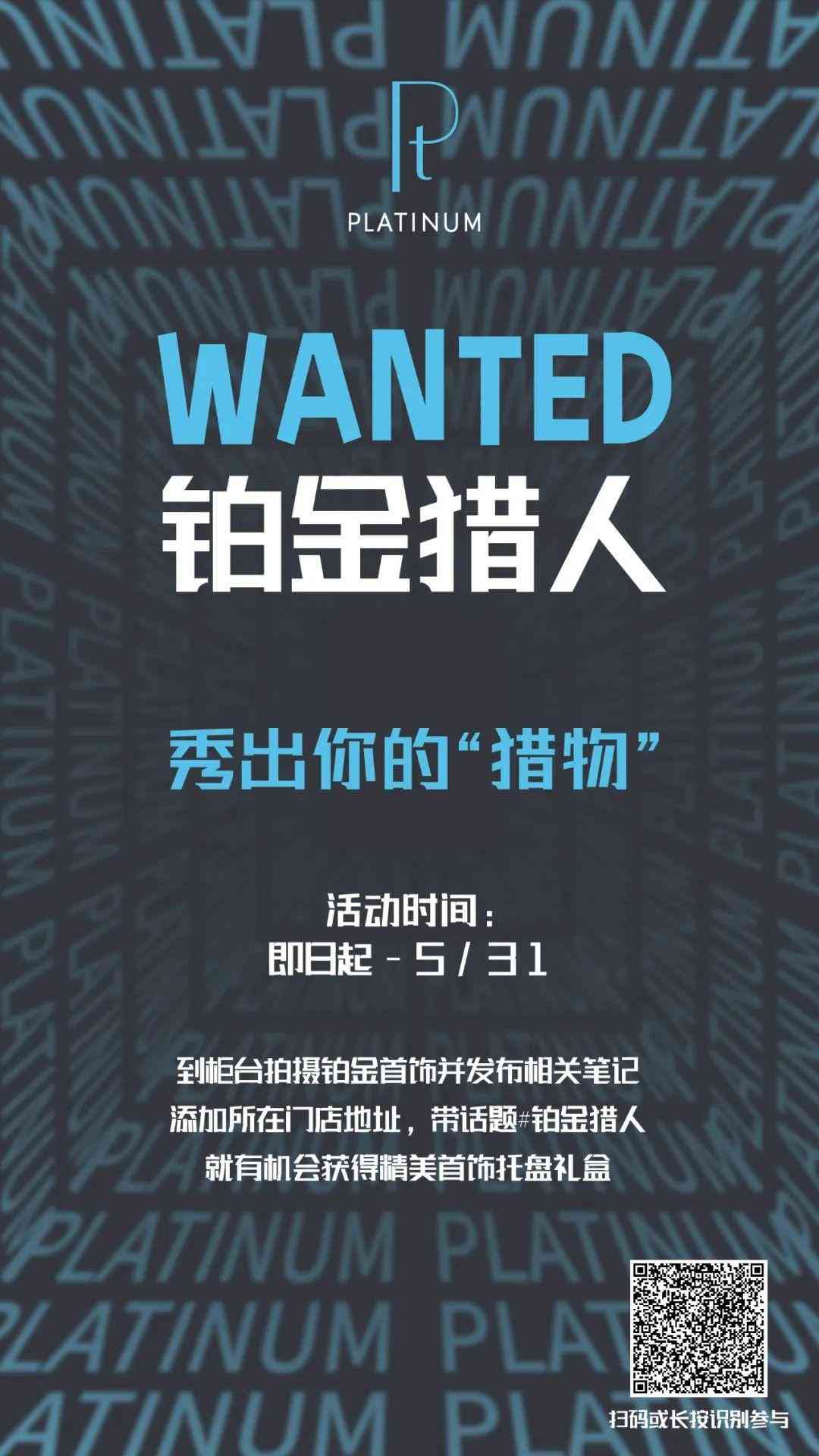 如何找到那些适合自己的宝藏款铂金首饰呢?不必担心,一起来参与Pt铂金的「铂金猎人」行动,线下柜台试戴铂金首饰并发布相关小红书笔记,你自带时尚敏锐的慧眼,一定能发现铂金首饰潜力股,快来化身铂金买手,把心动款带回家吧!
