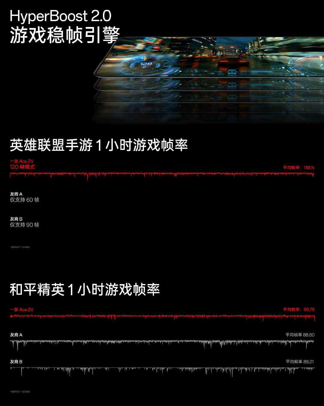 卷外手机质感后,一加 Ace 2V还开卷了屏幕参数:6.7英寸1.5K 450ppi 120Hz柔性直屏,与友商A和B不同的是,它直接取消了屏幕塑料支架,所以屏幕正面的黑边极其窄,屏幕下巴只有2.32mm,比2K屏还低了24.4%的功耗,配合“灵犀触控”和HyperBoost 2.0稳帧引擎,让你的女神能够满帧畅玩《英雄联盟手游》、《和平精英》,这能不夸你这个男孩子很会挑礼物?