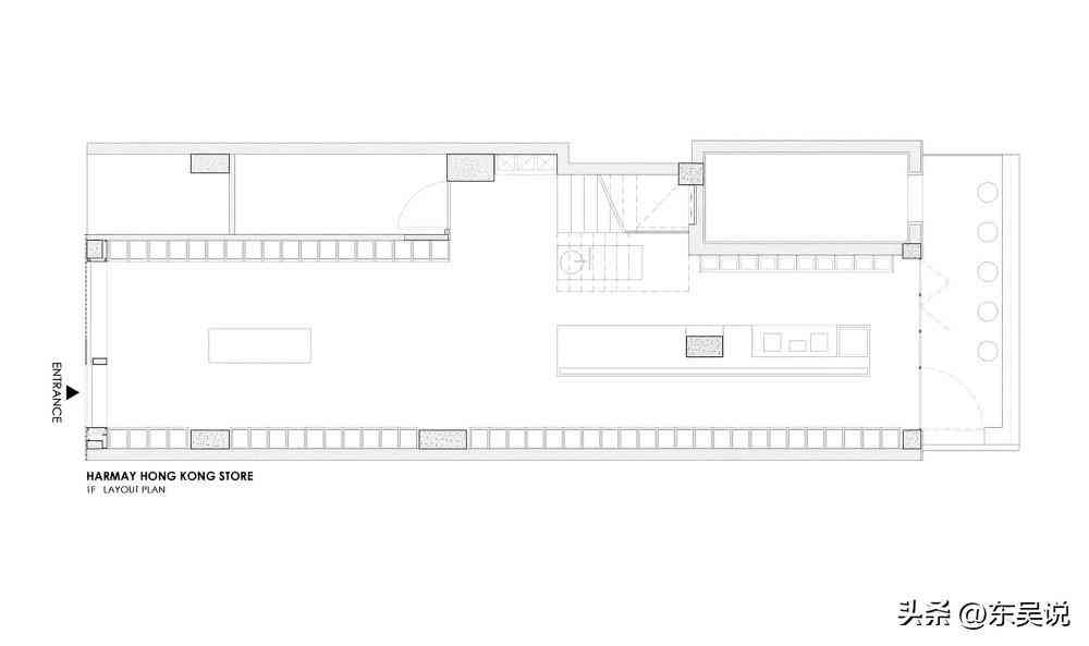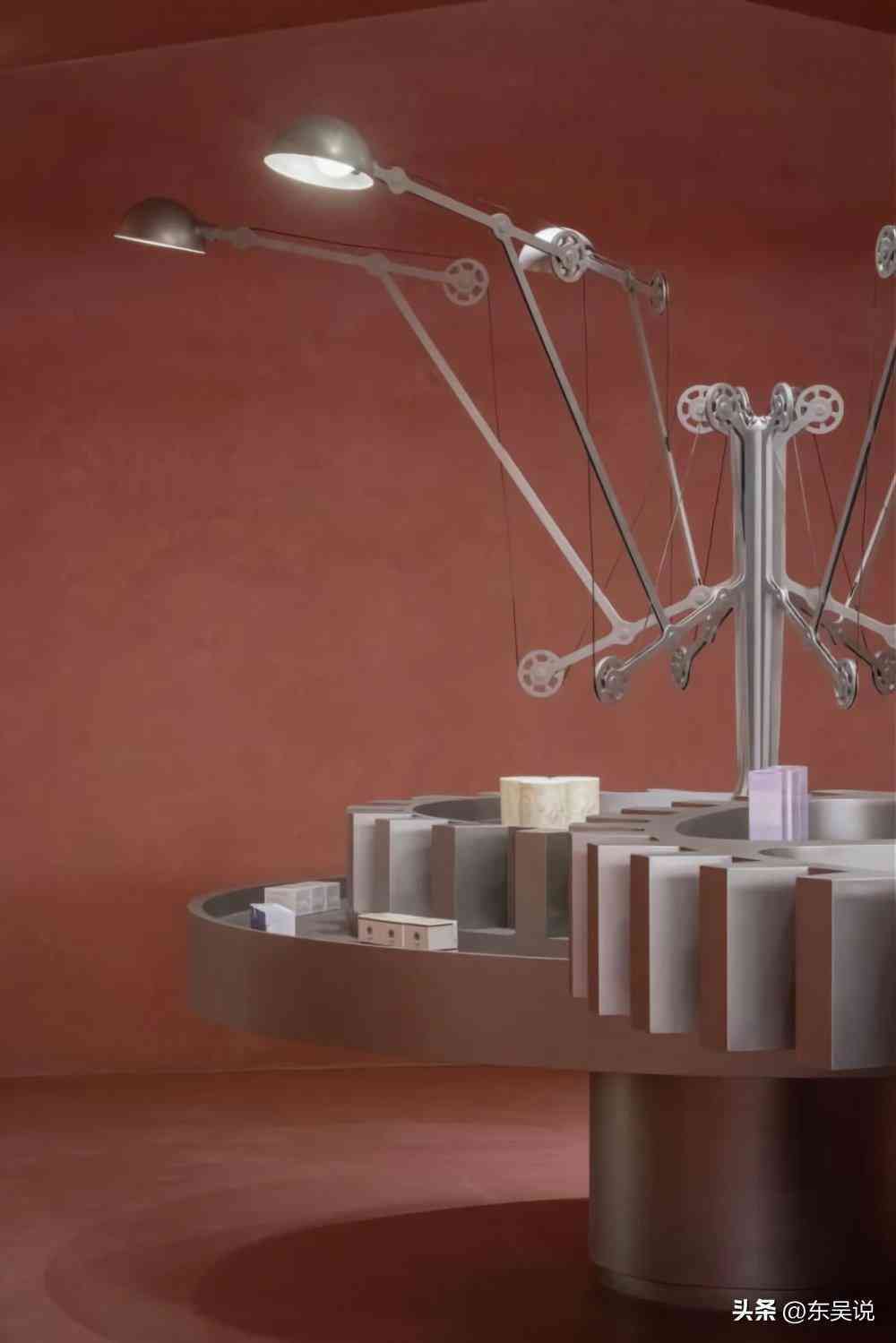 HARMAY武汉店是一栋始建于20世纪40年代的日本租界建筑,AIM将时间作为串联三层空间的主导线索,通过材料和空间的细节暗喻不同的历史时刻。此外,店内还有一个垂直方向的仓储及送货系统,凭借机械、科幻感的造型模拟时光穿梭机,引导顾客以全新的视角来探索丰富的空间层次。
