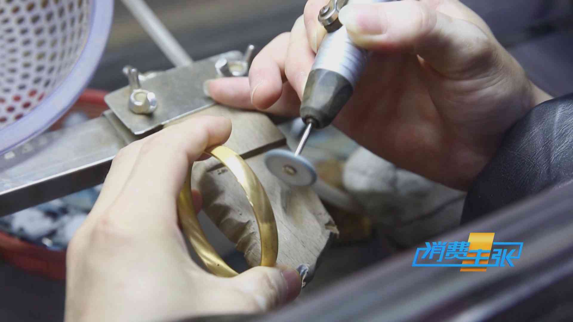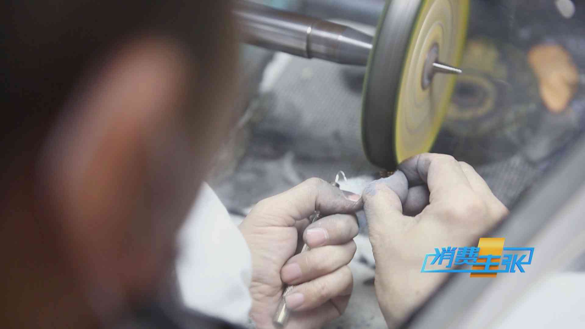 硬金生产工厂厂长 王锦财:打砂、电过以后,表面有一些细小的颗粒要处理掉,打平滑、喷砂出来整体效果才会好。