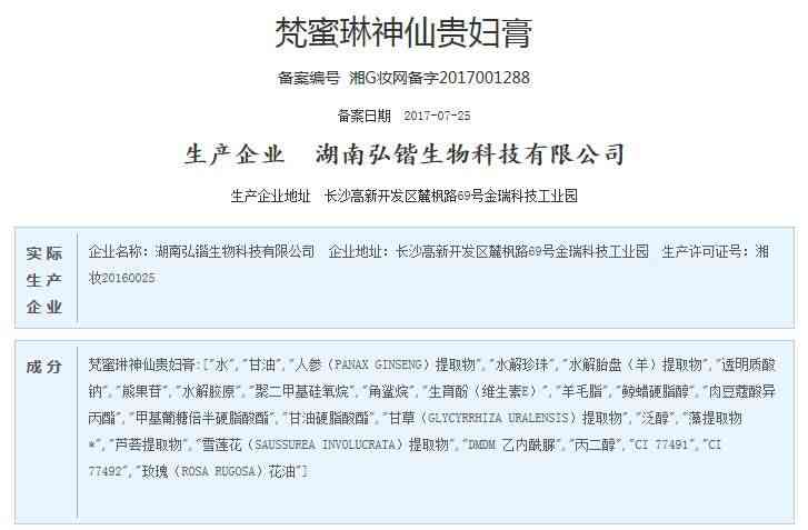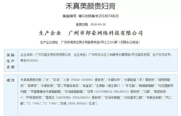 ▍梵蜜琳神仙贵妇膏、禾真美颜贵妇膏备案信息(2019年4月2日截图)