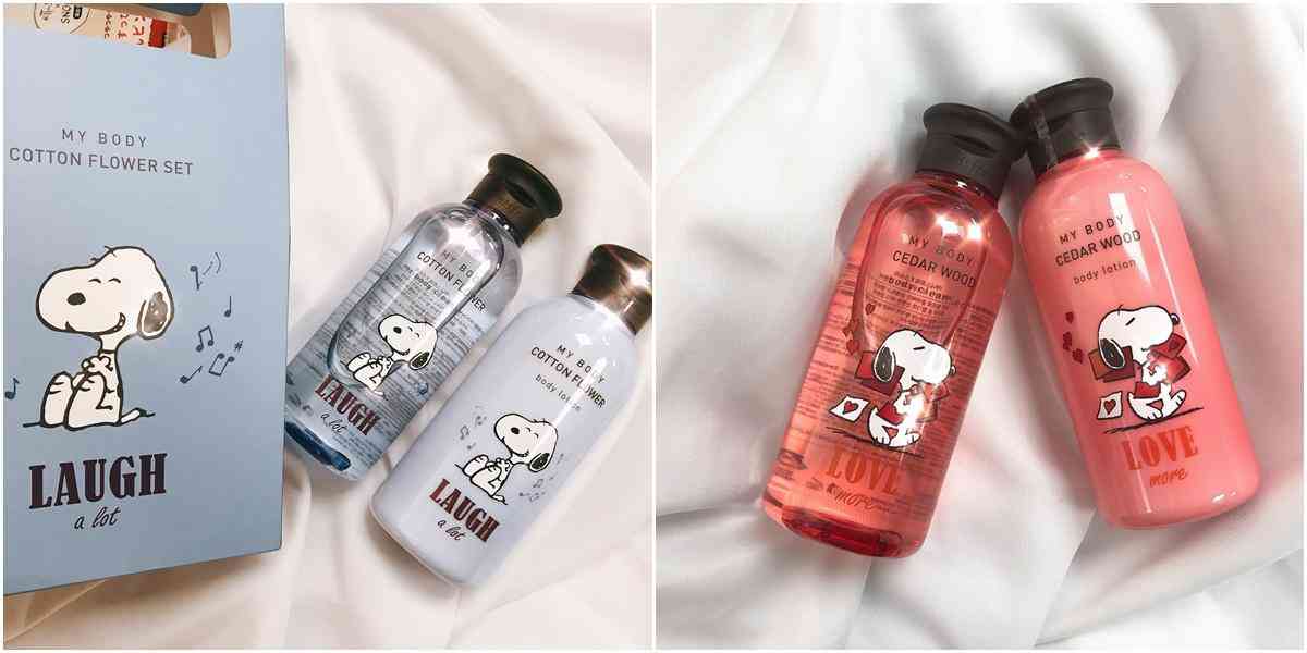 另一组保养是「innisfree X Snoopy彩虹香氛身体组」,包含了沐浴乳和身体乳~有两款香气,粉红色是木质调的雪松、蓝色是仿佛刚洗完澡的棉花香气,感觉很适合当情人节礼物,让对方身上有妳喜欢的香气(羞)