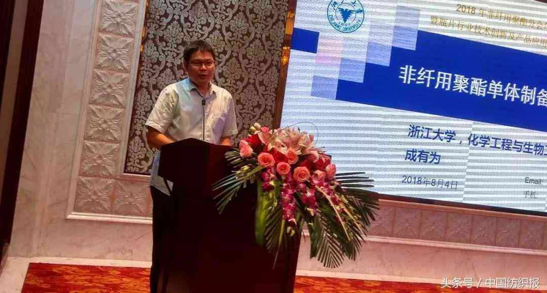 浙江大学化学工程与生物工程学院教授成有为讲述的是《非纤用聚酯新单体工业制备技术进展》,他详细介绍了Tritan™ 聚酯与CBDO技术开发、CHDM与低成本DMT生产新技术、2,5-呋喃二甲酸(2,5-FDCA) 与PEF、PIA生产新技术与低熔点聚酯四种技术的进展情况。