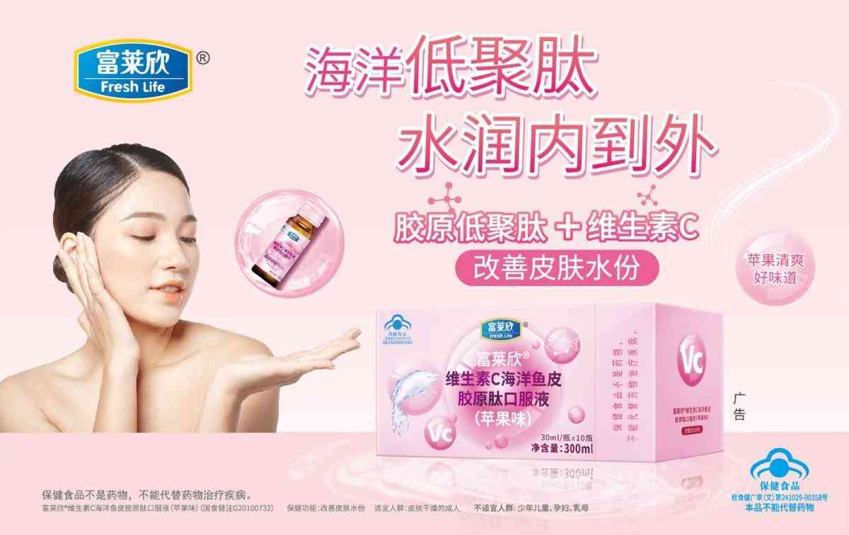 富莱欣维生素C海洋鱼皮胶原肽口服液具有以下特点:
