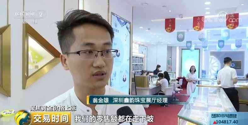 深圳鑫韵珠宝展厅经理 翁金雄:我们的零售额都在走下坡,就是有下降的这么一个趋势,大概占在百分之四五十左右。