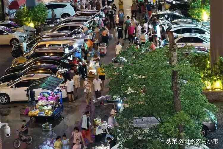 这张照片里,两个摊位就形成了鲜明的对比,一个是骑着三轮车来摆摊的妇女,卖些水果和矿泉水,看起来确实是地摊最真实的样子,而旁边则是开着小车来卖水果的小姐姐,现场还架着三脚架,这样一幕看起来也是有些滑稽的,开小车的来和骑三轮车的抢市场了。
