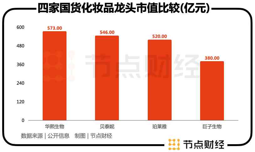 这也当前A股市值500亿元左右的四家国货化妆品龙头崛起的核心驱动力。这四家龙头分别是华熙生物(市值573亿元),贝泰妮(市值546亿元)、珀莱雅(市值520亿元),巨子生物(市值380亿元)。