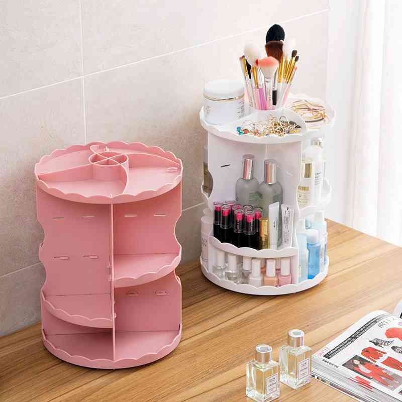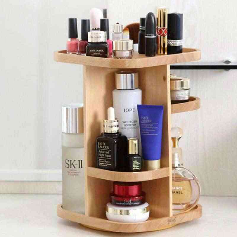 收纳盒+收纳架二合一,可以把不同高度的瓶瓶罐罐统统塞进去,可以旋转使用省去了不少麻烦。