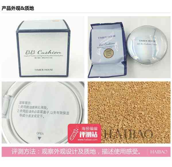 评测结果:500万气孔创新气垫海绵,独特气泵设计,有效锁住BB精华,精华配方,独特植萃精华融合亮彩粉珍珠。粉霜细腻水润。