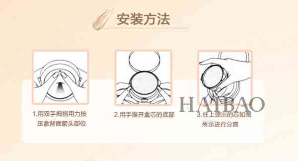 评测结果:用明亮的金属光泽感来打造外包装和内盒,内盒简洁,干净,镜面设计时尚大方。盒芯有独立包装,并具备粘膜纸盖住气垫,保证全新未使用前,气垫和其中的精华成分不会直接曝露于空气或与外界接触。盒芯安装方法如上图所示。