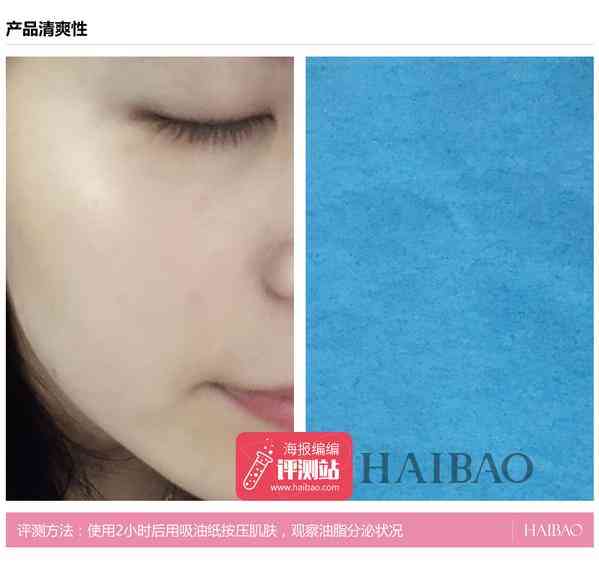 评测结果:夏天天气炎热,脸部很容易出油脱妆影响妆感,在脸部涂抹好婷美小屋水亮焕采气垫BB霜,待使用后2小时用吸油纸按压肌肤,吸油纸上并没有明显的印记残留,油脂分泌很少,补水效果较好不油腻,说明其清爽性很好。